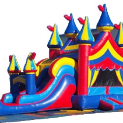 Bring the circus to your backyard with the Big Top Combo Splash — a bold, colorful inflatable that combines a spacious bounce area, an exciting slide, and a splash-ready landing for double the fun. Distinguished by six towering peaks and bright carnival-style colors, this is the largest combo in our inventory and instantly creates a lively, festive atmosphere that kids love. The design blends a roomy bouncing field for active play, a climbing area leading to a thrilling slide, and a water-safe splash zone to cool off on warm days. Built to entertain groups of kids at parties, festivals, or family gatherings, the Big Top Combo Splash delivers eye-catching style and nonstop action while keeping play contained and easy to supervise.