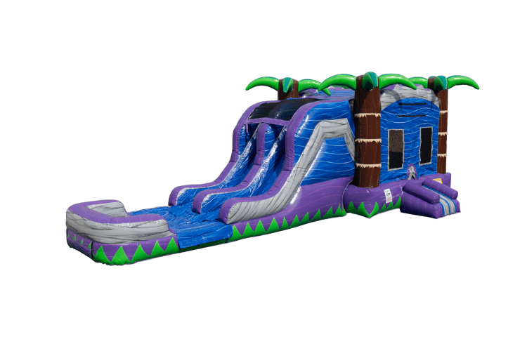 Tropical Breeze Splash is a colorful, water-ready rental that turns any backyard into a miniature island oasis. Designed for easy setup and family-friendly fun, this unit combines a spacious bounce area with an integrated splash pad and shallow wading zone so kids can jump, slide, and cool off all in one place. Bright tropical graphics and palm- and wave-themed accents create a festive, beach-like atmosphere without leaving home. Safety features include soft, reinforced walls, a low-entry step for younger guests, and a non-slip splash surface to reduce slips when wet. Lightweight materials and straightforward anchoring make delivery and setup quick, and the unit is simple to keep clean and dry between uses. Ideal for summer birthday parties, neighborhood get-togethers, and poolless playdates, Tropical Breeze Splash offers refreshing, supervised water play for multiple children at once while fitting comfortably on typical yards or driveways.